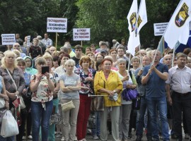 Люди вышли на митинг под лозунгами «Нет повышению пенсионного возраста!», «Бюджет страны пенсиями не спасешь!», «Нет – отмене пенсий! Да – прогрессивному налогу на богатых!», «Господдержку - пенсионерам, а не олигархам!», «Пенсионная реформа лишает молодежь будущего, а ветеранов – жизни!» и «В гробу мы увидим эту пенсию!».